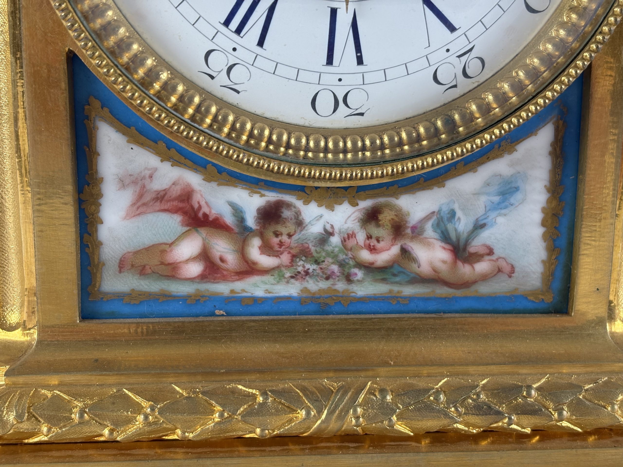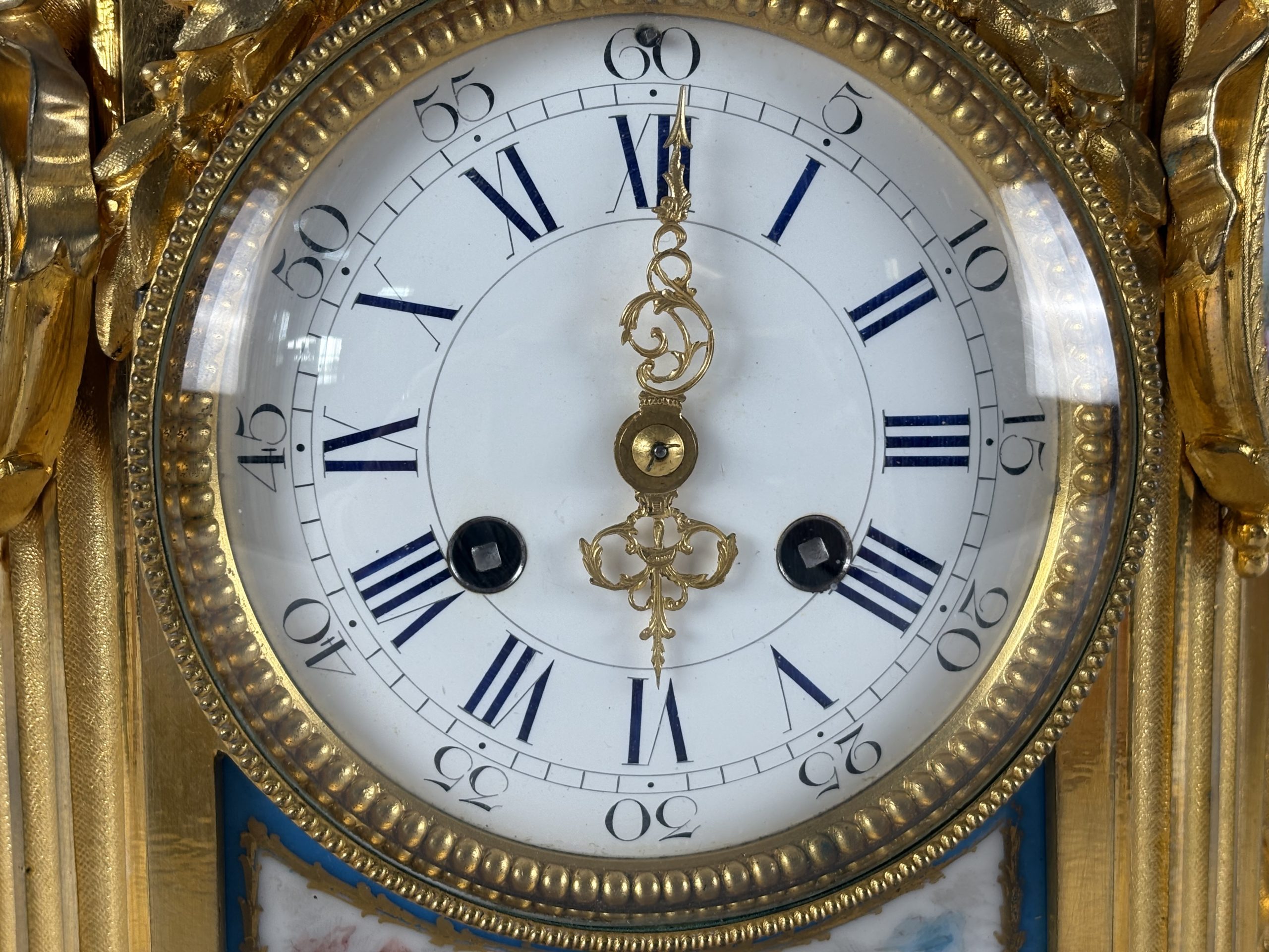 Construction: The case stands on graceful, gilded legs and has openwork side panels, which is typical of French clocks from this period.